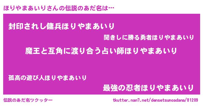 | 胡散臭い通販商品みたいなあだ名 | 『お金では代えられないイリジウム磁石…その名も「ほりやまあいり」』 |