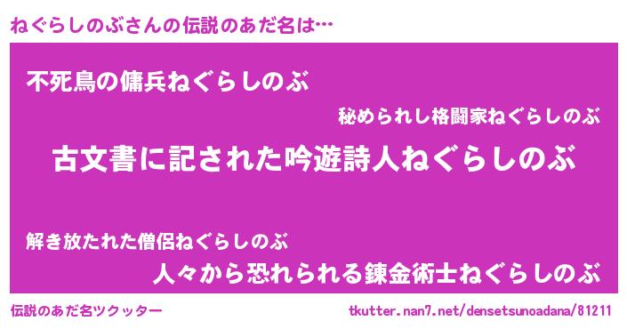 | 意味不明あだ名 | 『永久保存ねぐらしのぶ』 |