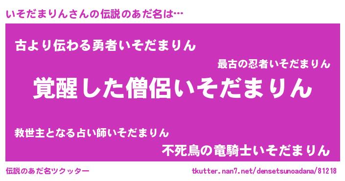 | 意味不明あだ名 | 『とにかく怪しいいそだまりん』 |