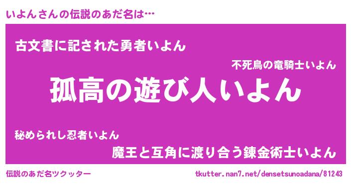 | ヒーロー風カッコイイあだ名 | 『魔戒騎士イヨ』『仮面イヨダー』 |
