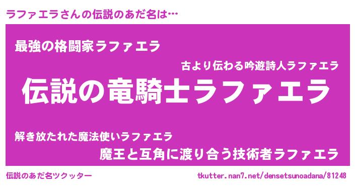 | ファンタジー風あだ名 | 『ラフフェル』『エターナルラファエラー』 |