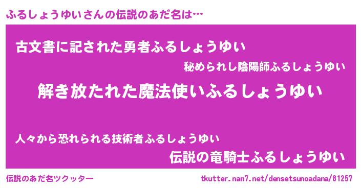 | ポケモン風あだ名 | 『ヒフルショウユイ』『フルセウス』 |