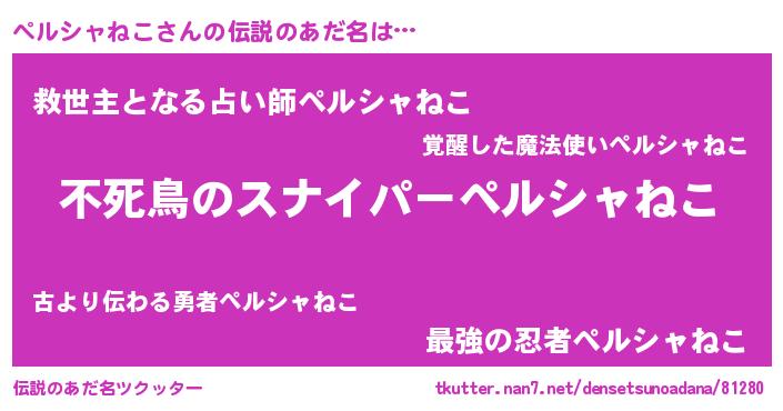 | 男性向けラノベタイトル風あだ名 | 『ペルシャネコアートオンライン』 |