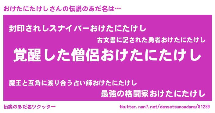 | 意味不明あだ名 | 『自称おけたにたけし』 |