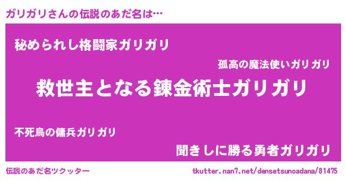 | ヒーロー風カッコイイあだ名 | 『天空の使者ガリガリ』『仮面ガリダー』 |