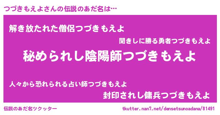 | 恥ずかしいあだ名 | 『ツヅキモエヨデラックス』『つづっちょ』 |
