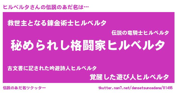 | ヒーロー風カッコイイあだ名 | 『超時空戦士ヒルベルタ』『仮面ヒルダー』 |