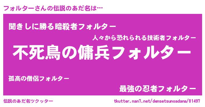 | 男性向けラノベタイトル風あだ名 | 『魔弾の王とフォルター』 |