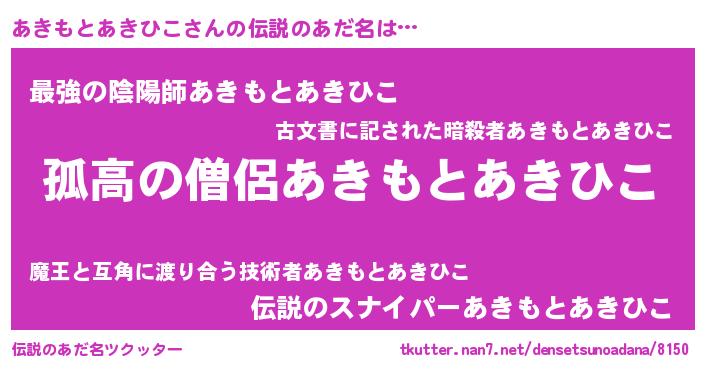| 意味不明あだ名 | 『とにかく怪しいあきもとあきひこ』 |