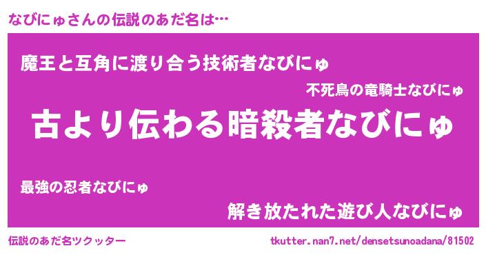 | ヒーロー風カッコイイあだ名 | 『ネオナビニュ』『正義の使者なびにゅ』 |