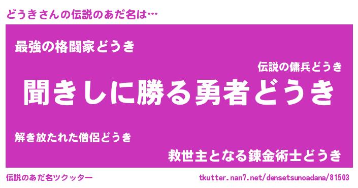 | ヒーロー風カッコイイあだ名 | 『ネオドウキ』『ウルトラどうきマン』 |