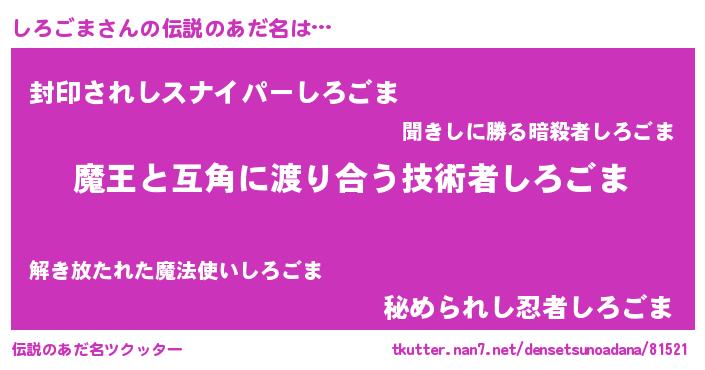 | ヒーロー風カッコイイあだ名 | 『愛の使者しろごま』『スーパーシロゴマ』 |