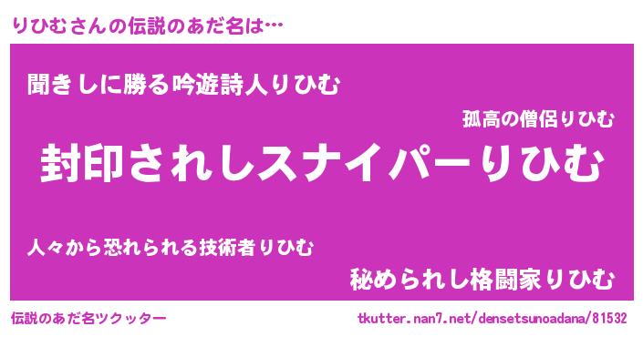 | 胡散臭い通販商品みたいなあだ名 | 『億万長者になれる霊験あらたかなお札…その名も「りひむ」』 |