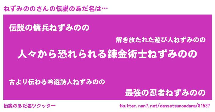 | ヒーロー風カッコイイあだ名 | 『正義の使者ねずみのの』『仮面ネズダー』 |