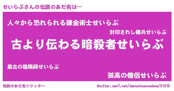 | 意味不明あだ名 | 『なめこ科せいらぶ属』 |