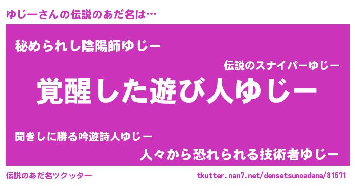 | 意味不明あだ名 | 『とにかく怪しいゆじー』『自称ゆじー』 |
