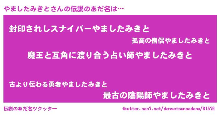 | 意味不明あだ名 | 『住所不定無職やましたみきと(56歳)』 |