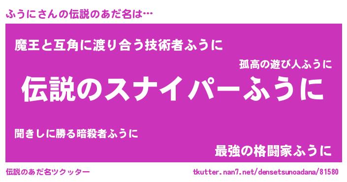 | 男性向けラノベタイトル風あだ名 | 『魔法科高校のふうに』『ふうにの憂鬱』 |