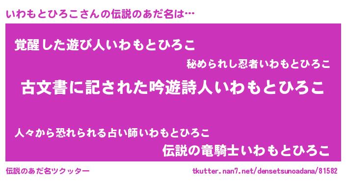 | ヒーロー風カッコイイあだ名 | 『ネオイワモトヒロコ』『天弓騎士イワ』 |