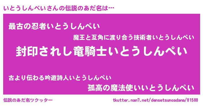 | 胡散臭い通販商品みたいなあだ名 | 『芸能人もオススメする高麗人参…その名も「いとうしんぺい」』 |