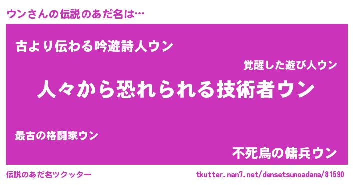 | ヒーロー風カッコイイあだ名 | 『正義の使者ウン』『ネオウン』 |