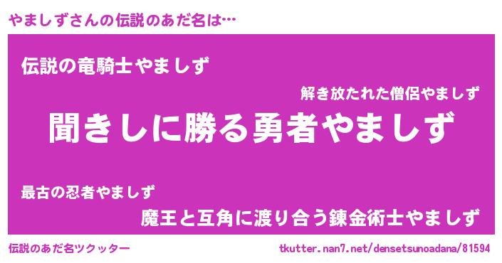 | ヒーロー風カッコイイあだ名 | 『ネオヤマシズ』『超時空戦士ヤマシズ』 |