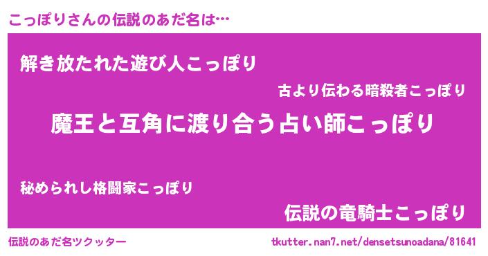 | ヒーロー風カッコイイあだ名 | 『愛の使者こっぽり』『暗黒騎士コッ』 |