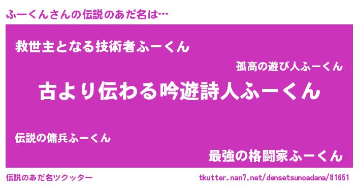 | 意味不明あだ名 | 『永久保存ふーくん』 |
