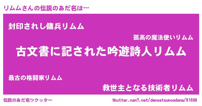 | 意味不明あだ名 | 『自称リムム』『住所不定無職リムム(65歳)』 |