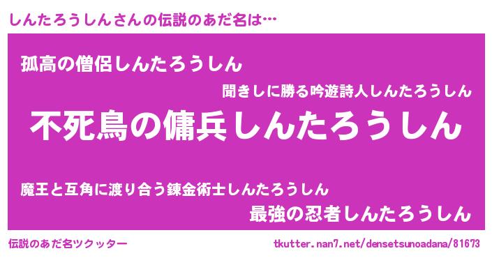 | 女子向けラノベタイトル風あだ名 | 『しんたろうしんアンティーク』 |