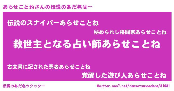| 女子向けラノベタイトル風あだ名 | 『あらせことねストレイドッグス』 |
