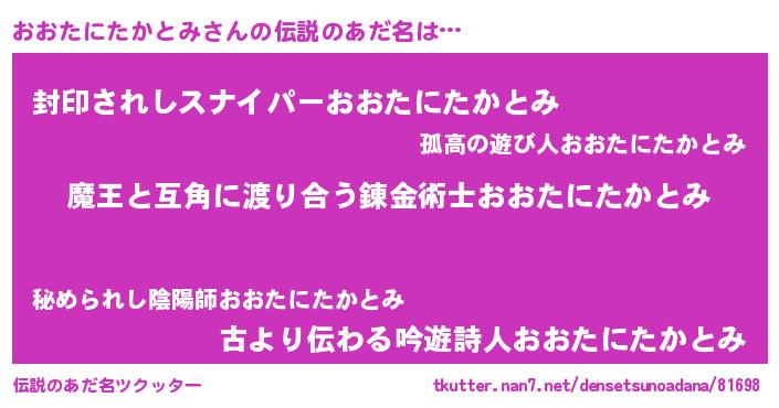 | 男性向けラノベタイトル風あだ名 | 『魔法科高校のおおたにたかとみ』 |