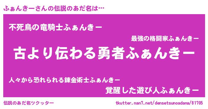 | 胡散臭い通販商品みたいなあだ名 | 『来世でも幸せになれる水素水…その名も「ふぁんきー」』 |