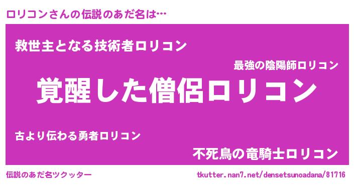 | ヒーロー風カッコイイあだ名 | 『炎刃騎士ロリ』『仮面ロリダー』 |