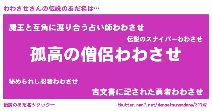 | 女子向けラノベタイトル風あだ名 | 『わわさせは平凡を望む』 |