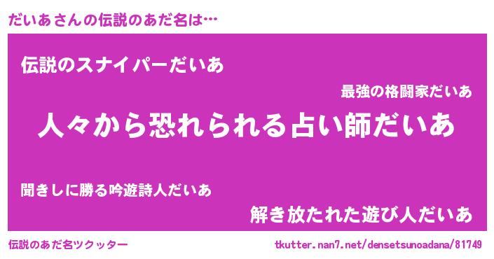 | 男性向けラノベタイトル風あだ名 | 『緋弾のダイア』『はたらくだいあさま!』 |