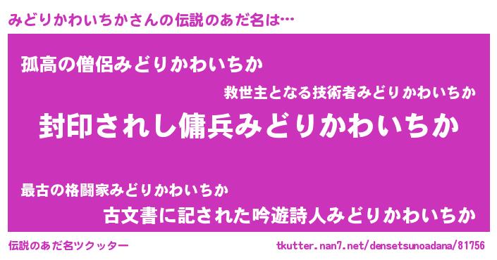 | ヒーロー風カッコイイあだ名 | 『スーパーミドリカワイチカ』 |