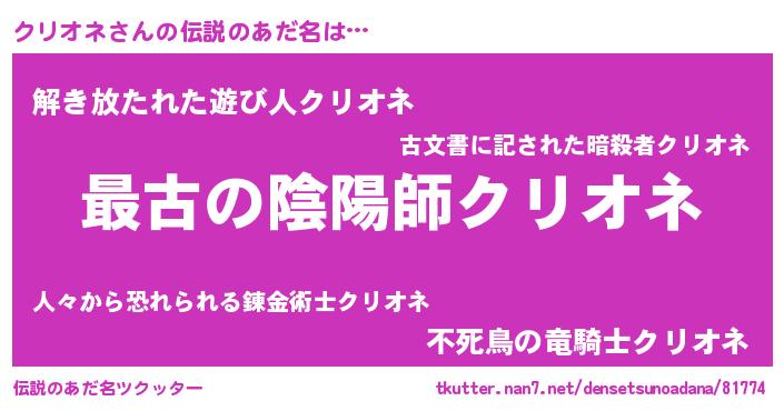 | 欧米人風あだ名 | 『クリオネクリステル』 |
