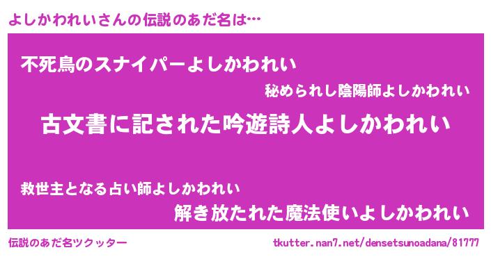 | ファンタジー風あだ名 | 『ヨシディッシュ』『ヴァルヨシーナ』 |