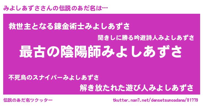 | 女子向けラノベタイトル風あだ名 | 『シンデレラみよしあずさ家の靴箱館』 |