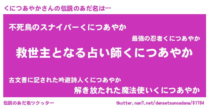 | ヒーロー風カッコイイあだ名 | 『慈愛の使者くにつあやか』 |