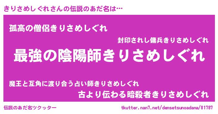 | ヒーロー風カッコイイあだ名 | 『最強戦士キリサメシグレ』 |