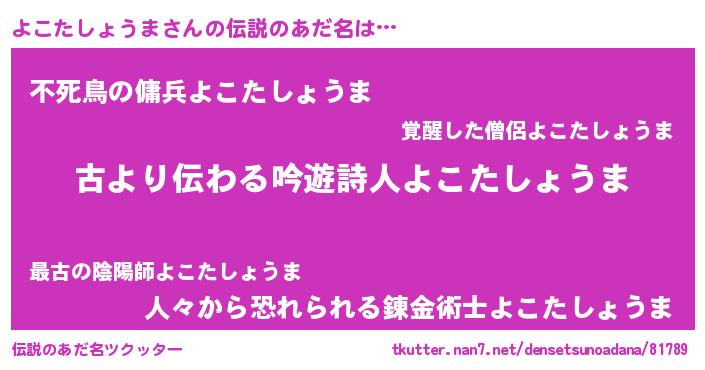 | 意味不明あだ名 | 『住所不定無職よこたしょうま(1歳)』 |