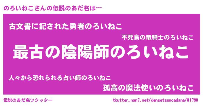 | ファンタジー風あだ名 | 『エターナルノロイネコー』 |