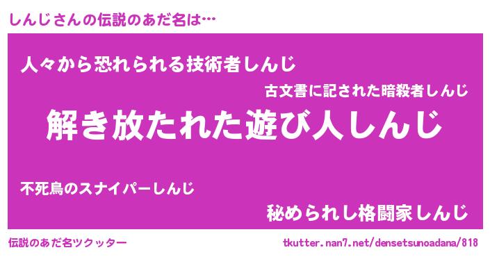 | 意味不明あだ名 | 『自称しんじ』『とにかく怪しいしんじ』 |