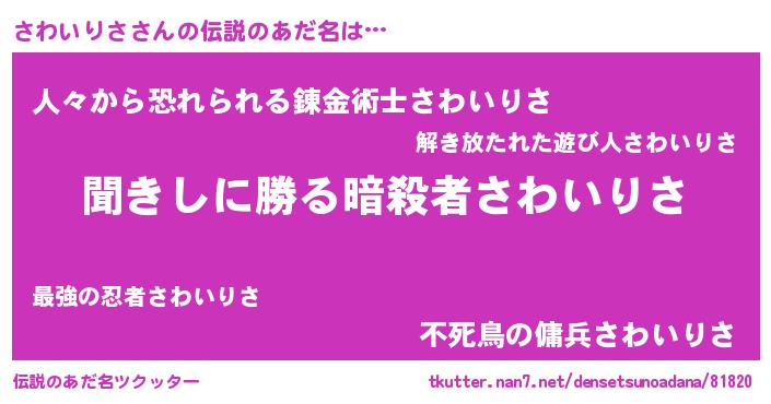 | 意味不明あだ名 | 『永久保存さわいりさ』『自称さわいりさ』 |