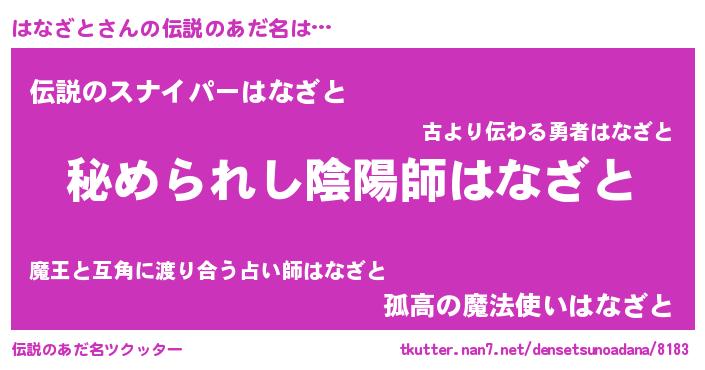 | ヒーロー風カッコイイあだ名 | 『超時空戦士ハナザト』『仮面ハナダー』 |