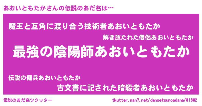 | 肩書あだ名 | 『あおいともたか上級大将』 |