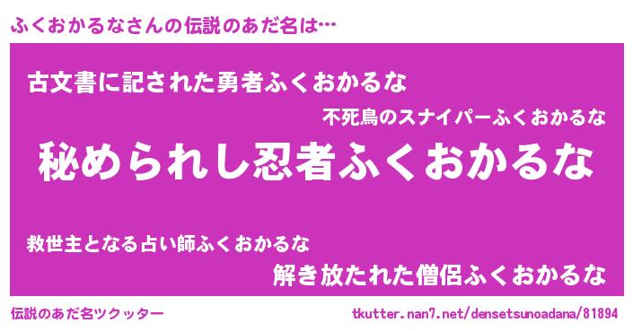 | ヒーロー風カッコイイあだ名 | 『仮面フクダー』『ネオフクオカルナ』 |