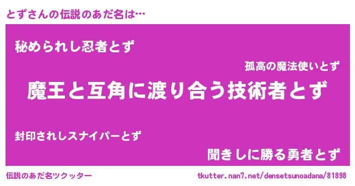 | ヒーロー風カッコイイあだ名 | 『愛の使者とず』『ウルトラとずマン』 |